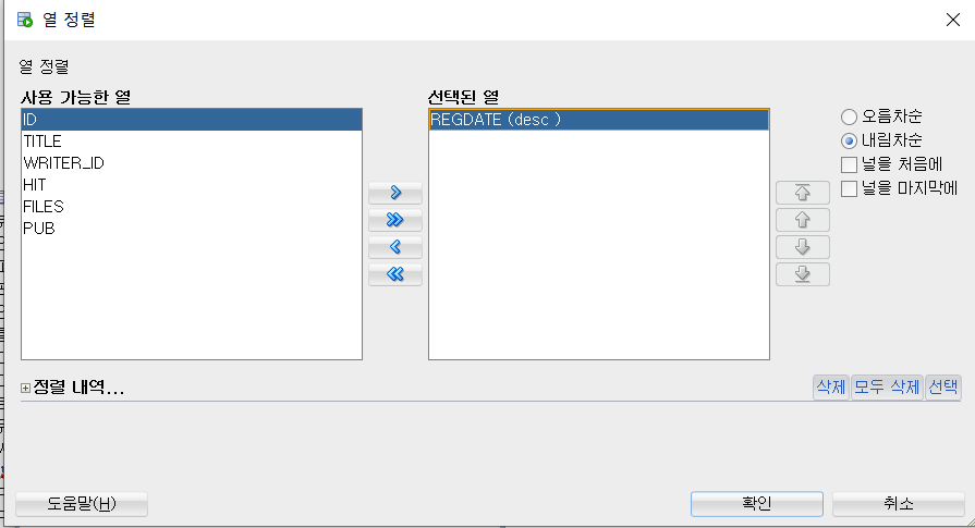 원하는 데이터 옆으로 보내고 내림차순 혹은 오름차순으로 설정하면 된다.