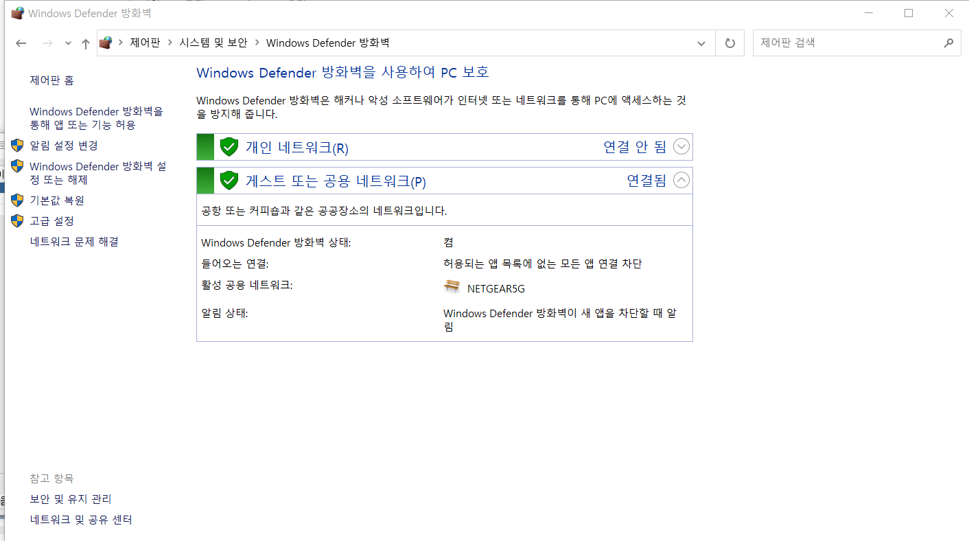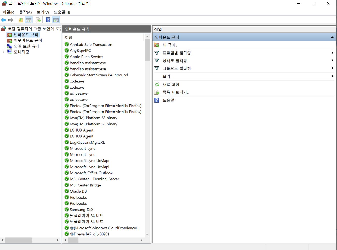 windows defender 방화벽/고급설정