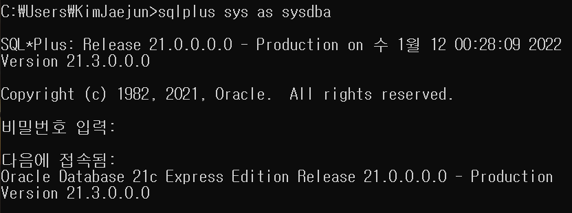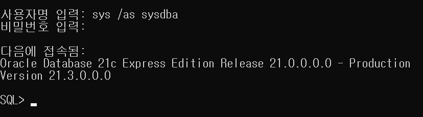 혹은 SQL plus에서 아래와 같이 로그인해도 된다.