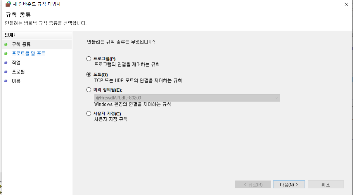 인바운드규칙/ 새규칙