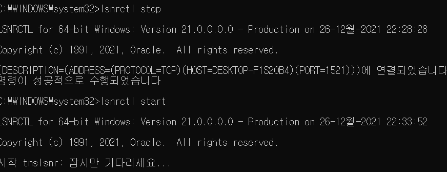 두 문장을 실행해서 lsnctrl을 껐다 켜라(귀찮으면 그냥 컴퓨터 껐다 켜도 될듯)