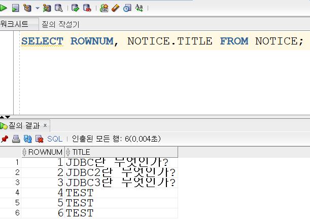 SELECT ROWNUM, NOTICE.* FROM NOTICE;