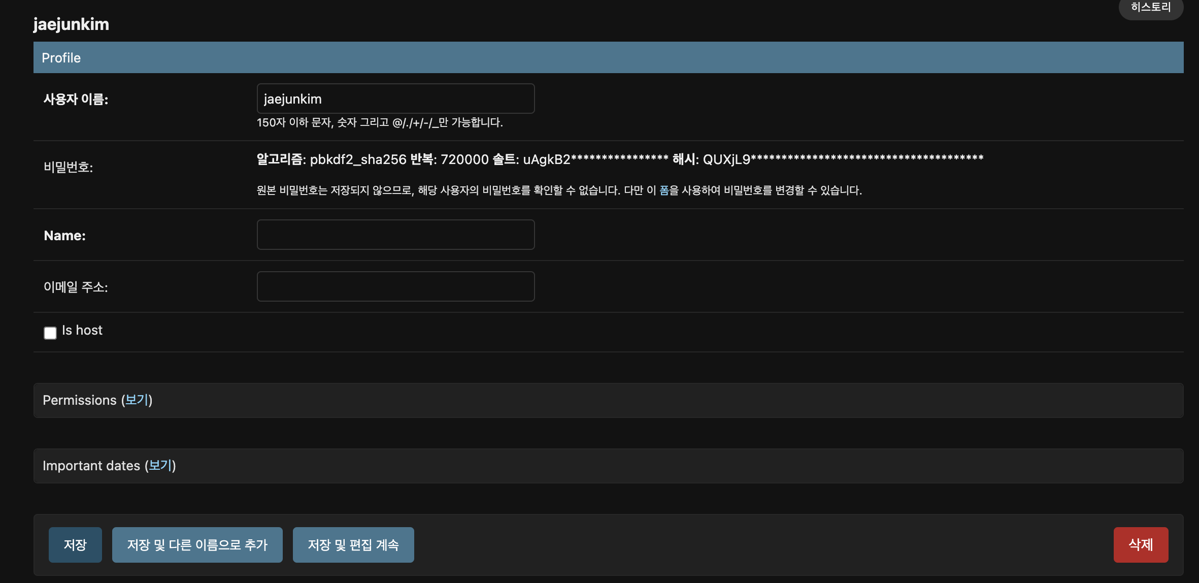 권한 추가, important dates(마지막로그인,등록일)추가