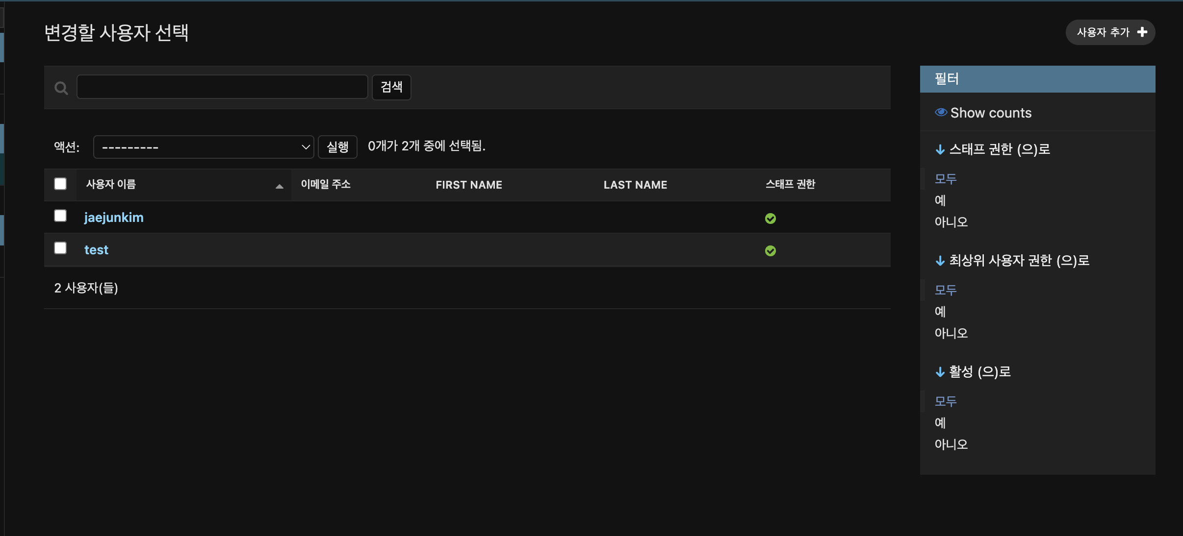 결국은 상속 받은 UserAdmin 재정의 하는 것임 auth.admin.py에 들어가면 비슷한 코드들이 있음