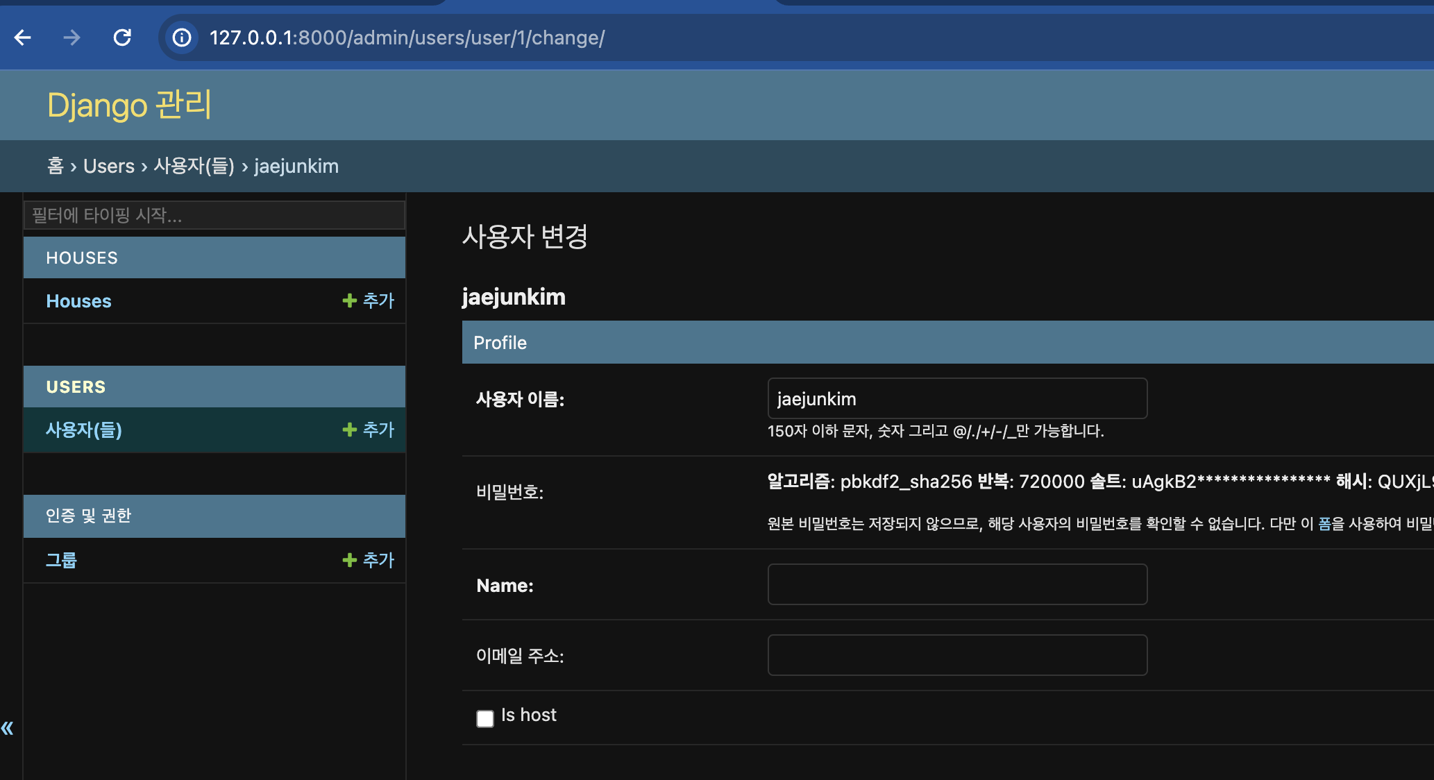 중간에 모델에 외래키를 추가했다면 migrations 파일들을 모두 삭제하고(house,users) db(db.sqlite3)도 날려줘야함