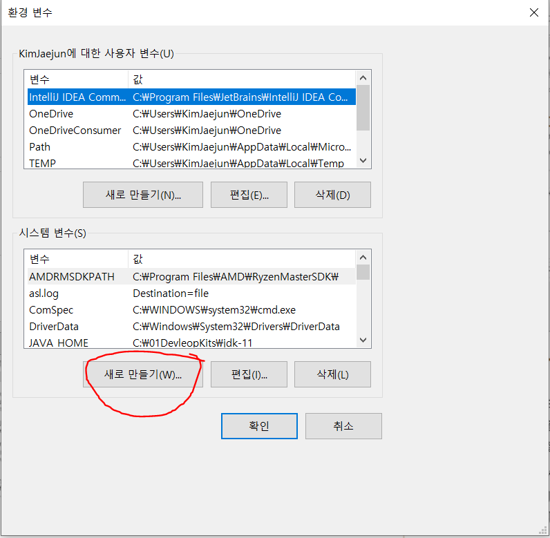 시스템 변수에 JAVA_HOME을 추가하는 것인데 선택 사항이긴하다. 나중에 PATH에 추가할때 가독성 보기 좋게하려고