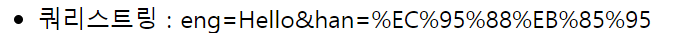 eng는 hello가 입력되었고 han은 안녕이 입력되었지만 한글이라서 안녕의 utf-8값인 %EC%95로 출력됨