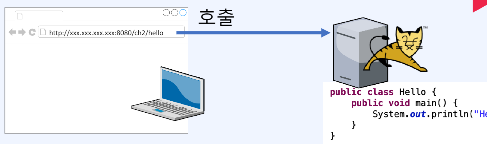 //톰캣이 [/hello] url을 받으면 실행시켜준다는 의미이다.